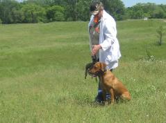| Temper is 60 lbs, dark fox red, straight tail, nice coat and bone. She is a solid pheasant dog, quiet, calm, controlled, easy to handle. She is an AKC Master Hunter and the daughter of Rainey, my first Master Hunter. Her puppies are doing very well in home and field. OFA hips: Good LR-193311G25F-PI OFA elbows: Normal LR-EL51312F25-PI OFA eyes: Normal LR-EYE3701/60F-PI CNM: clear EIC: carrier PRA/RD/OSD/SD clear-test results Dilute clear-test results Pedigree-click here |