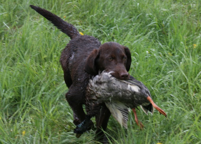 | Rainmaker's Early Bird Special, MH "Maggie" 11-22-10 NAFC FC Cody Cut a Lean Grade x HRCH UH Back in Black Pepper |