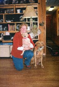 | Chili pups go home! "Lars", Lars Chilian with Rainmaker, with mom Chili (and me), ready to head home with his fancy new collar. |